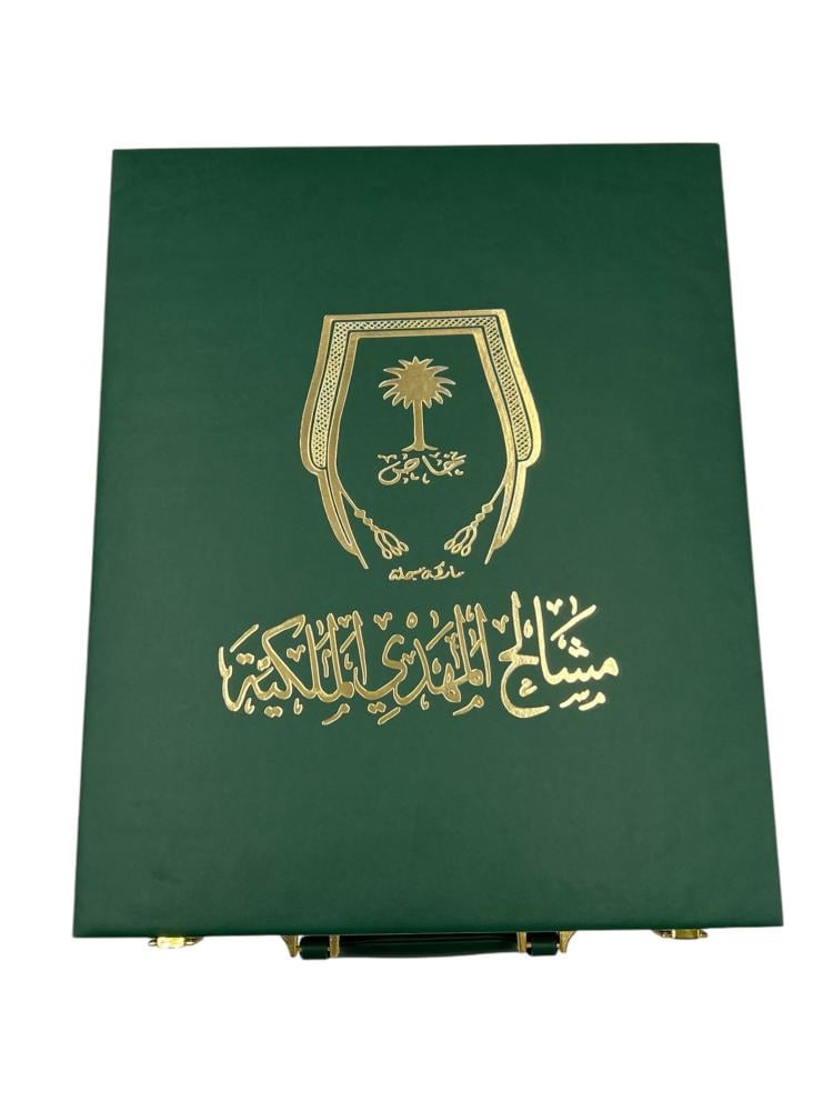 تتميز العلبة بلونها الأخضر الفاخر الذي يضفي عليها لمسة من التميز والرفاهية، مما يجعلها خيارًا مثاليًا للمناسبات الخاصة مثل الأعراس، الاحتفالات الملكية، والتكريمات الفاخرة. تتميز العلبة بتصميم شنطة مميز يتماشى مع روح مشالح المهدي الملكية التي تتمتع بتاريخ طويل في صناعة المشالح الفاخرة. وبهذا الشكل، لا تقتصر العلبة على كونها مجرد وسيلة لحفظ المشلح، بل تصبح جزءًا من تجربتك الفاخرة.