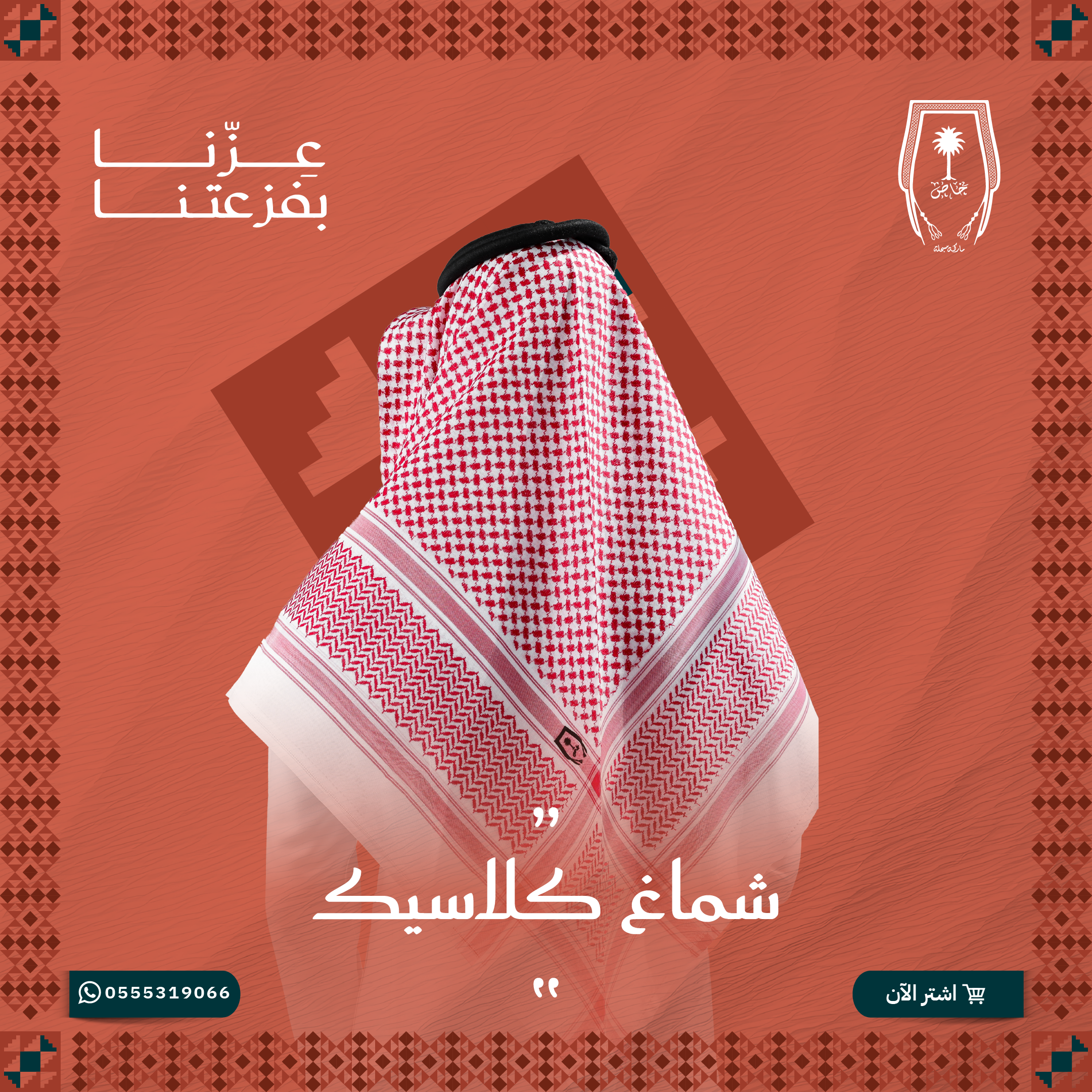 الشماغ الكلاسيك هو تصميم تقليدي يجمع بين النقوش التراثية والخامات الفاخرة، ويرتدى غالبًا في المناسبات الرسمية واليومية لإضفاء مظهر أنيق وأصيل.